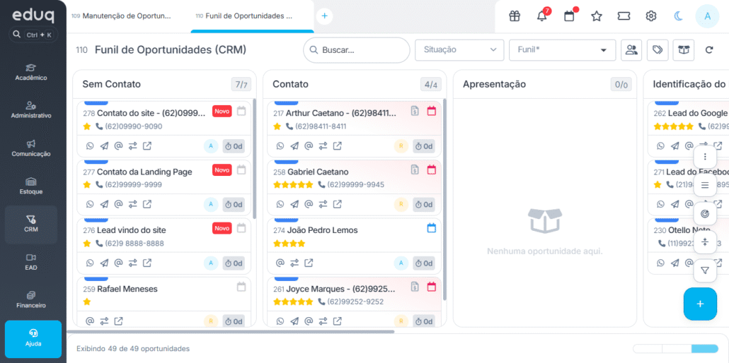 Tudo isso nativo, integrado diretamente dentro do Eduq CRM, para facilitar o seu dia a dia.